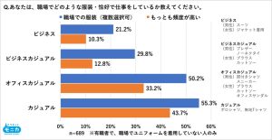 職場の服装「カジュアル化」5割超が実感も 対面では約7割、オンラインでは約5割が相手の服装が気になると回答 カウネットは、コミュニティサイト「カウネットモニカ」会員1,089名を対象に「仕事の服装、身だしなみについて」と […]