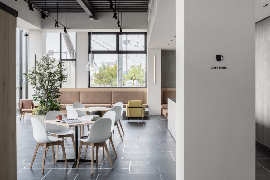 1階に社員食堂を設け、地域開放も可能な設計に。地域貢献と業界イメージの刷新を狙いました。