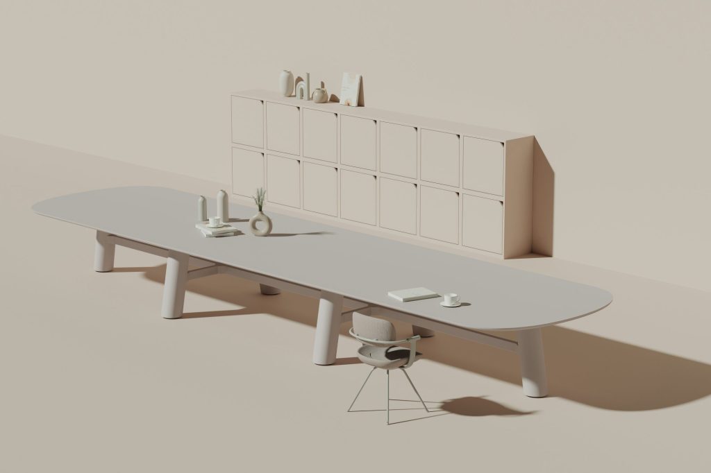 4つの高さが異なるユニットによって、多様な個が交わる空間をつくるモデュール家具だといいます。ロー/ハイソファ、そしてロー/ハイテーブルからなるユニットは、空間のどの位置にいてもフラットに情報を共有できるよう設計されているとしています。ボードルームはもちろん、レセプションやコミュニケーションエリアにも対応し、一体感のある空間を演出するとしています。