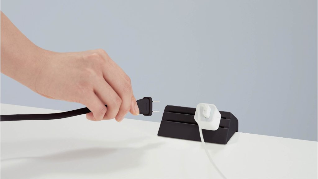 同製品は、空間や家具に馴染むライン状の差込口を採用し、差込口からコード出口まで360度隙なく配慮されたデザインだといいます。多様化するどんなオフィス空間にも調和するクランプ式コンセントとなっているとしています。インクルーシブデザインの手法により差し込み心地を検討し、誰でも使いやすい製品に仕上げたとしています。