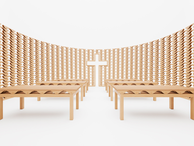 礼拝堂は人々が集まるパブリックな機能がありながら祈るというパーソナルな行為が行われていいる。ただ、礼拝堂に訪れたことのない人には中で何が行われているか日常的に目にすることはできない。閉じられた建築ではなく、内部の様子が感じられる公共空間内のオープンな場であれば、多様な人々が気安く訪れることができるのではないかと考えた。ひととき日常から離れて自分自身や大切な誰かを思い、祈るためのパブリックスペースのデザインである。