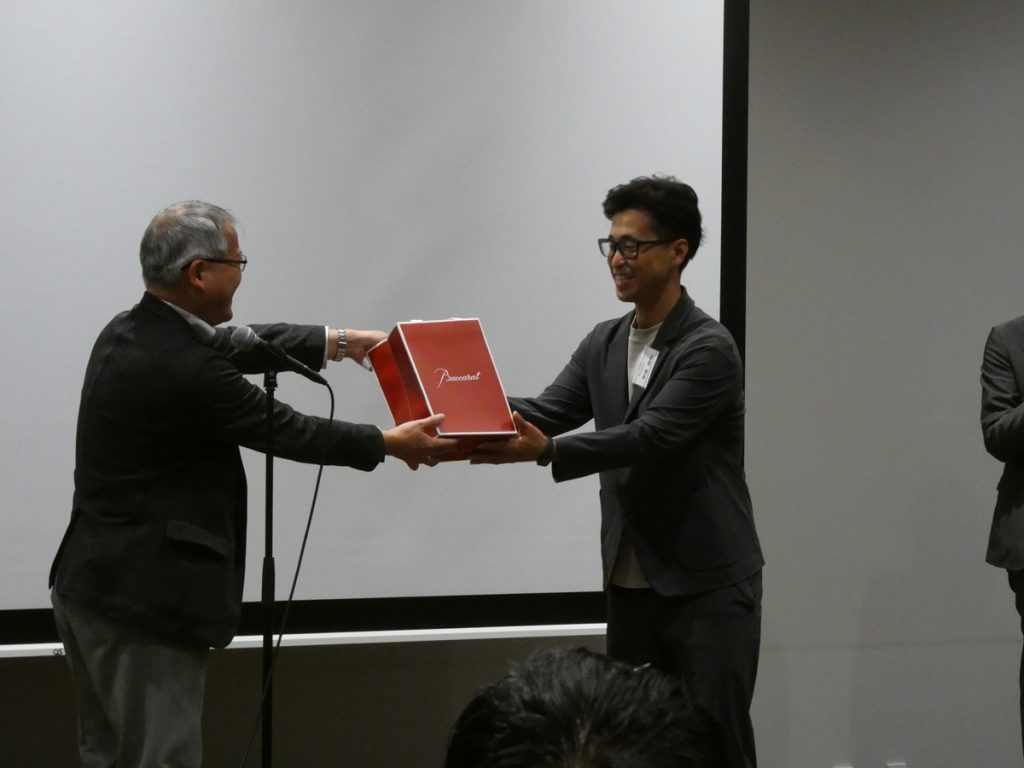 平澤氏には貫名専務理事からバカラのウイスキーグラスが贈呈されました。
