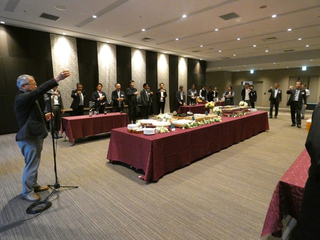 「修了式が終わりまして。まずは修了おめでとうございます。FLPは終了しましたが、皆様のリーダーシップの旅は今日から始まります。引き続きそれぞれの道を歩んでいただきたいのですが、一人で歩んでいくと大変ですが、20人の仲間がいますので、困ったときはその20人で共有していただければと思います。本日の皆様の門出をお祝いして乾杯をしたいと思います」と述べ乾杯の発声を行いました。