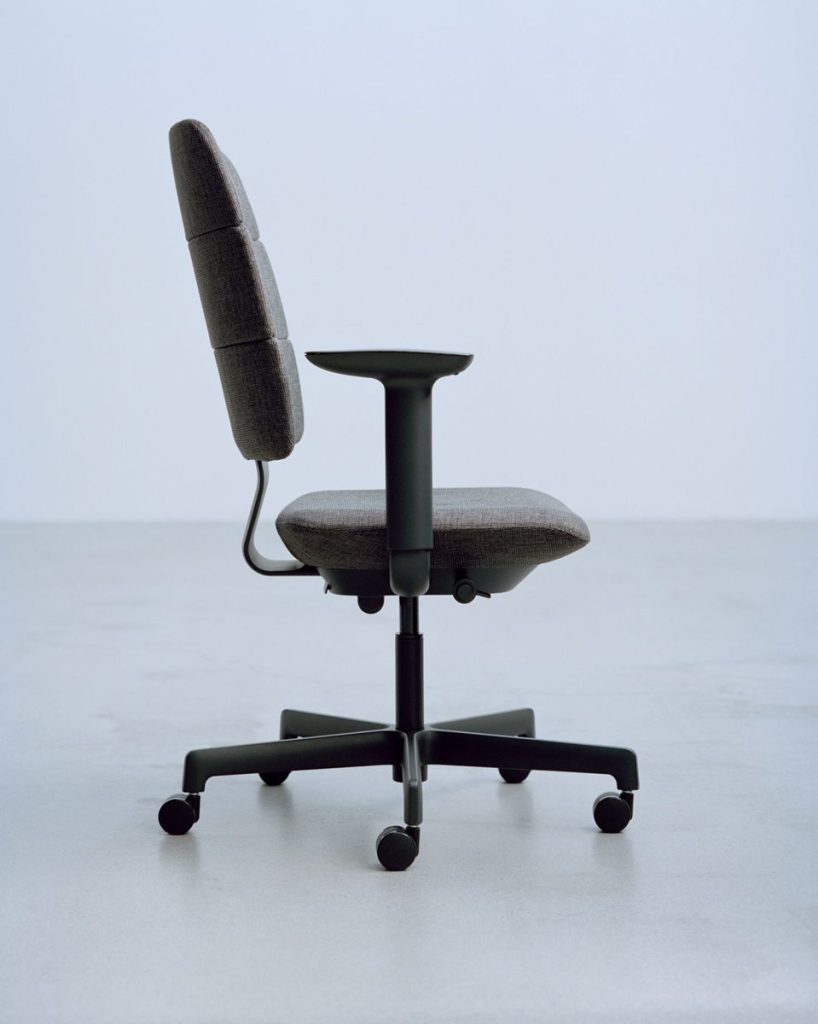 従来のオフィスチェアに多いエルゴノミックなフォルムから一線を画し、シンプルなスクエアのシルエットの中に、エルゴノミクスに基づいた3次元のカーブを内包。“存在を主張せず、使う人の姿を引き立てる”――ノイズのない形状と、身体をやわらかに支える高い快適性を両立したデザインだとしています。