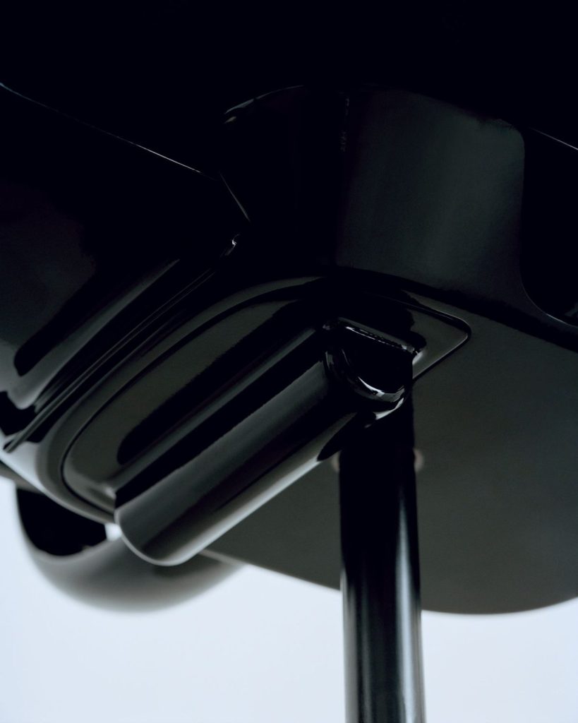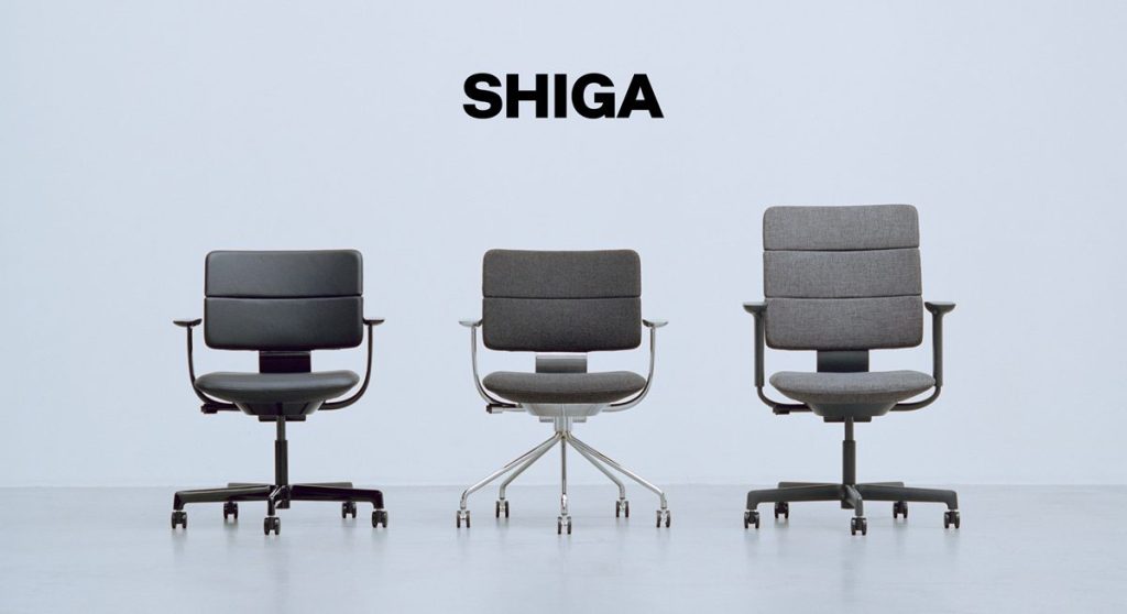 長年培われてきた設計技術と生産技術によって「SHIGA」の特徴であるコンパクトな座面下をはじめ、ミニマムなデザインと機能性を両立。背と座をつなぐ支柱部分にも軽快さを持たせながら、長時間でも快適に使用できる強度と安全性を、そして多彩なバリエーションの実現もこれまでの生産実績と挑戦により実現したといいます。