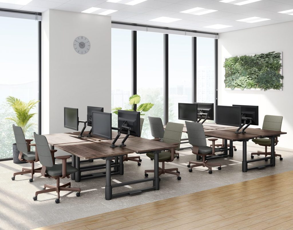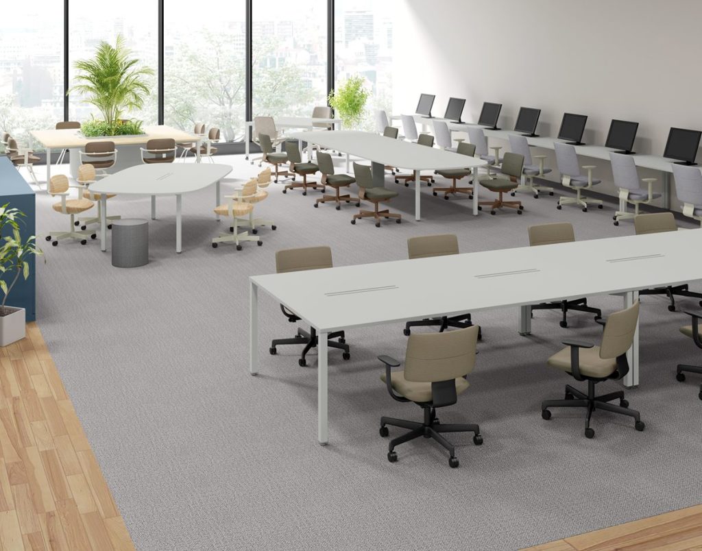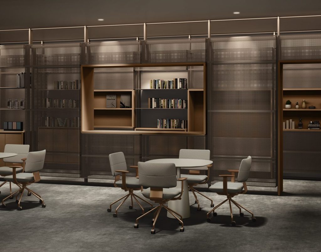 オフィスでは、木質什器やファブリック素材が混在する空間に自然に馴染み、執務エリア・ミーティングエリア・ラウンジなど、ゾーンを超えて一貫した美観を生み出すとしています。
