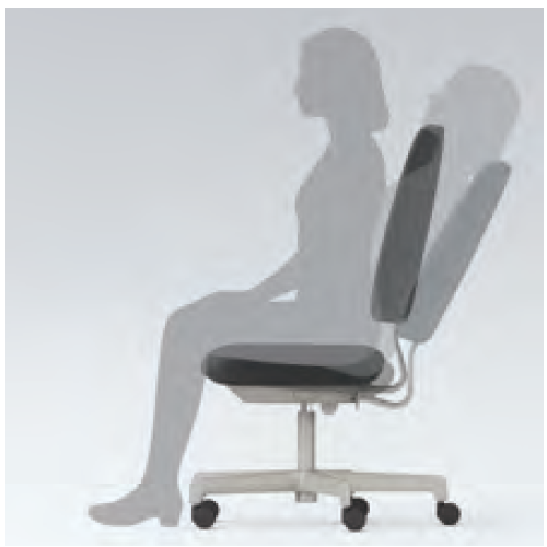 ロッキングには、イトーキで最も多くのタスクチェアに採用されている「アンクルムーブ・シンクロロッキング」を採用。くるぶしを支点に背と座が連動して傾き、後傾時に座全体が後方下にスライドすることで自然な姿勢変化をしなやかに支えるといいます。これにより、体の動きに追従しながら安定した座り心地を保つとしています(最大15度)。