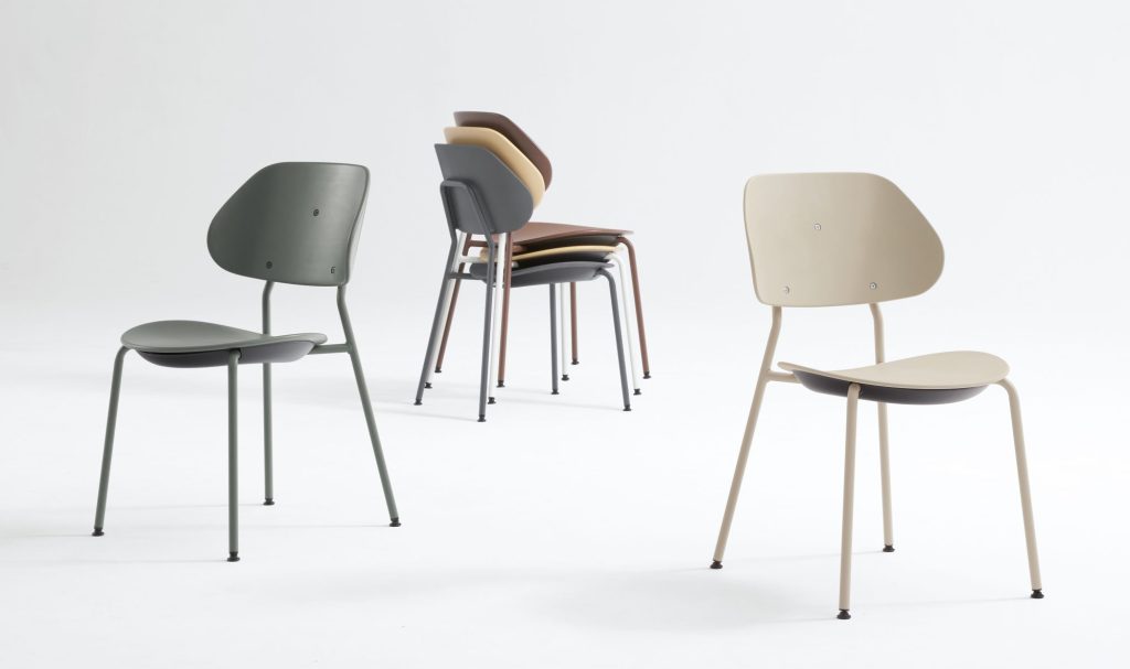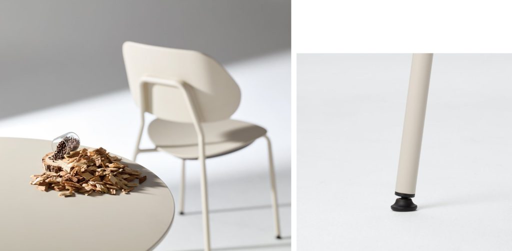 「Amita」は、カジュアルな空間に調和する柔らかいフォルムで、脚タイプのバリエーションが豊富なカフェチェアだといいます。背と座に合板を使用した従来の合板タイプに加え、背と座に木粉配合樹脂を使用した樹脂タイプを新たにラインアップし、2026年1月から発売するとしていす。木粉配合樹脂は、木が成長過程で二酸化炭素を吸収するため二酸化炭素排出量の削減に貢献し、木粉のつぶ感を感じる温かみのある風合いを演出するといいます。また、樹脂タイプは、合板タイプと比較して約600gの軽量化を実現したとしています。さらに、イスの動かしやすさや動かす際に出る音の改善のために、合板タイプと樹脂タイプどちらも脚端の材質を変更して改良を行ったといいます。座はクッションにすることも可能で、イスの移動や立ち座りする機会が多い食堂やカフェ空間での取り回しがより快適に行えるとしています。