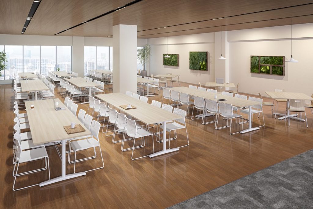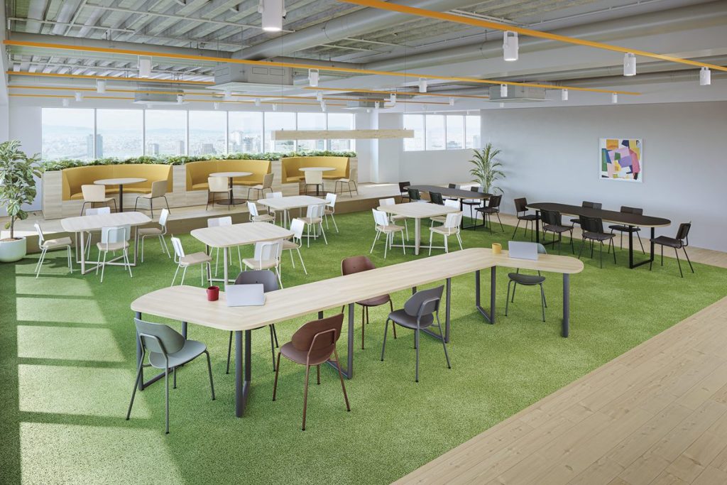 オカムラ、食堂空間に適したブース・チェア・テーブルのラインアップ追加