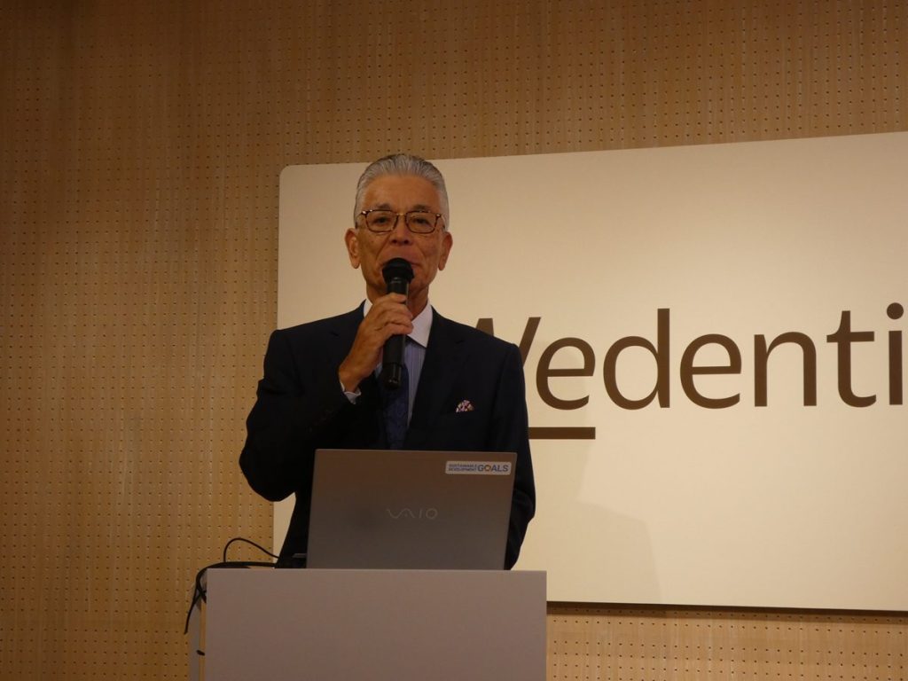 記者発表会の冒頭、挨拶に立った同社代表取締役 社長執行役員 中村 雅行 氏は