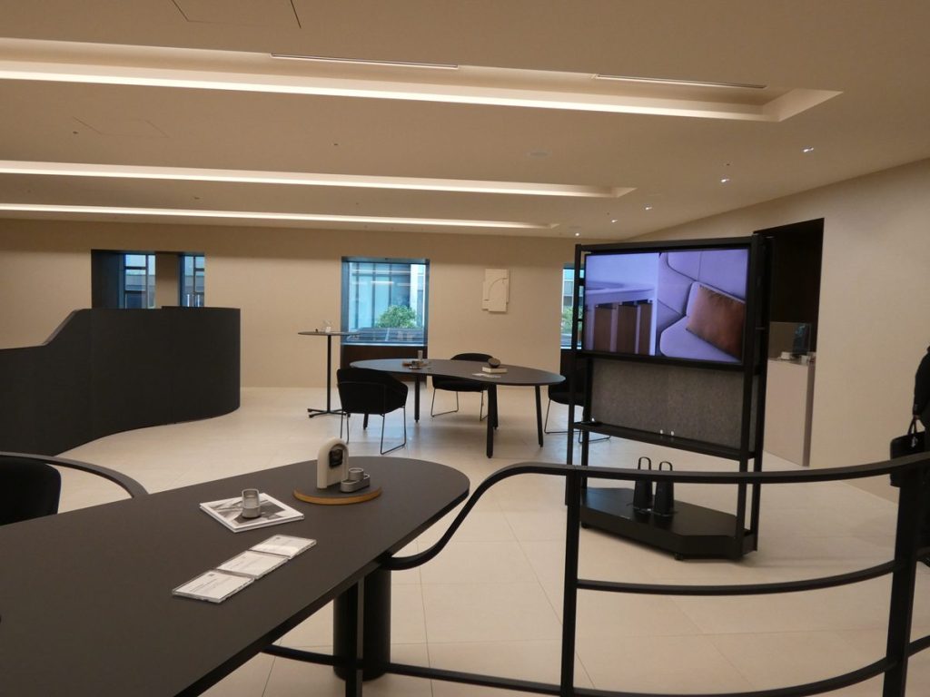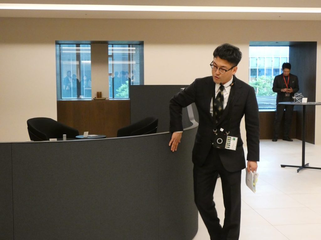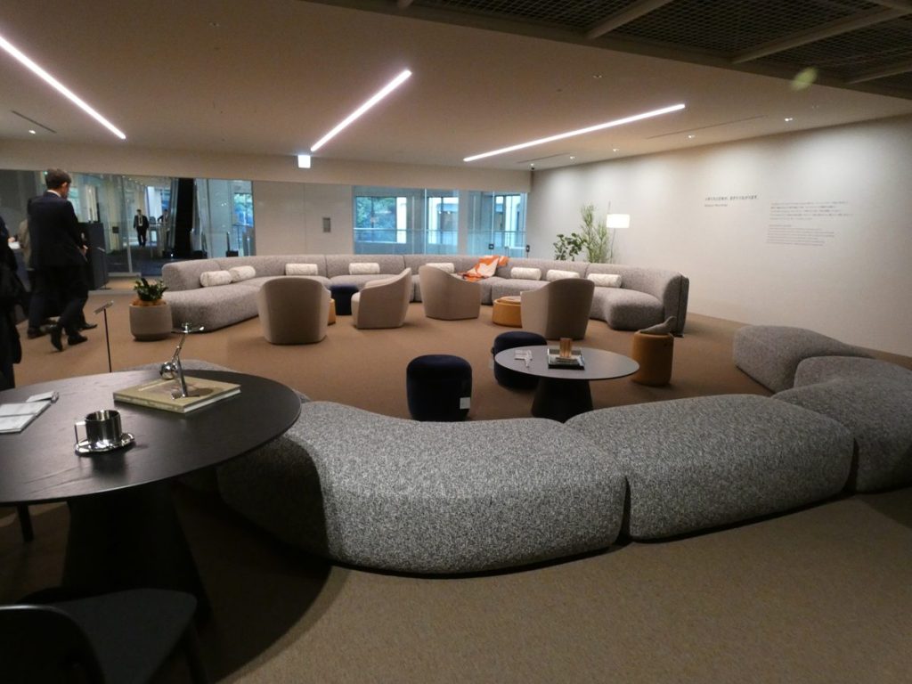 オカムラのブランディングの一環として、オカムラの卓越したものづくり。そして家具業界で新たな需要を創出して行くんだというこの思い。そして上質感を体感できる空間としています。」などと述べました。