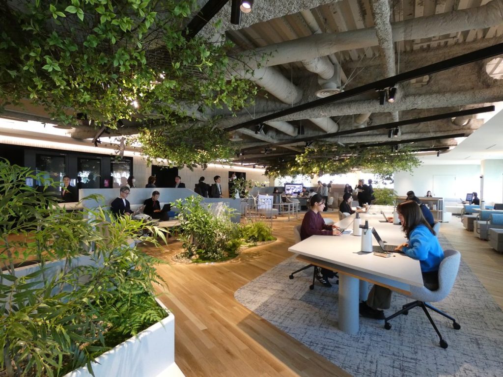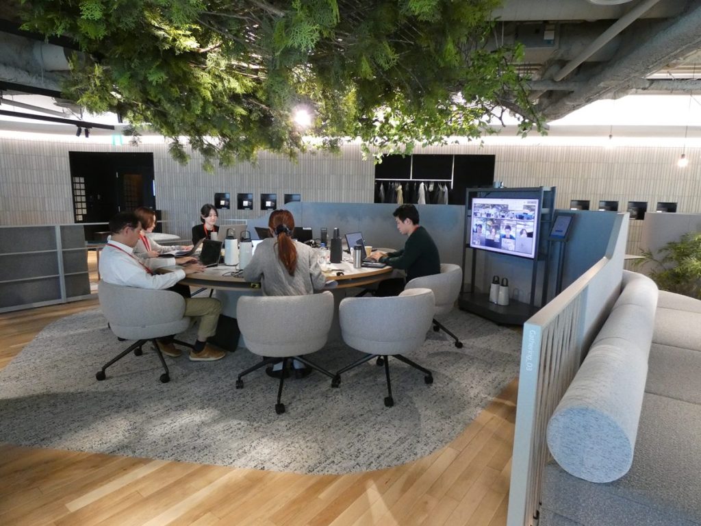 さらに、実際に同社の社員が働くオフィス「We Labo」に新製品を設置し、「Wedentity」をより体現する場としてリニューアルしたといいます。さまざまな部門、職種、役職の人が自然とまざりつながる働き方を実践しているリニューアルしたオフィス「We Labo」(ニューオータニガーデンコート25階)を公開しました。