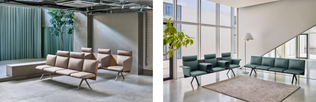 また、さまざまな張り地を選べるため、病院のほか自治体のエントランスやオフィスのラウンジエリアなど、多様な空間に活用できるとしています。