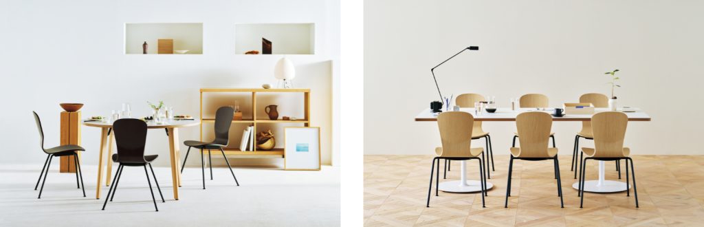 食堂エリアのほかワークラウンジエリアなどのコミュニケーションを大切にしたい空間にもマッチし、会話しやすい雰囲気づくりをサポートするとしています。