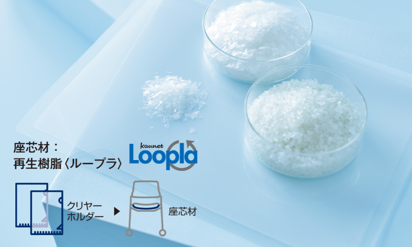 長く快適にお使いいただけるロングライフ設計を採り入れているといいます。背クッションと座クッションは、工具不要で簡単に交換が可能で、メンテナンス性に優れているとしています。また、使用済みのクリヤーホルダーを回収し再資源化した再生樹脂「Looplaペレット」を採用し、環境にも配慮しているとしています。