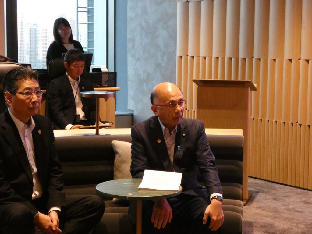 イトーキ本社で開かれた協定締結お披露目式。右から、農林水産副大臣・根本 幸典氏、イトーキ代表取締役社長・湊 宏司氏
