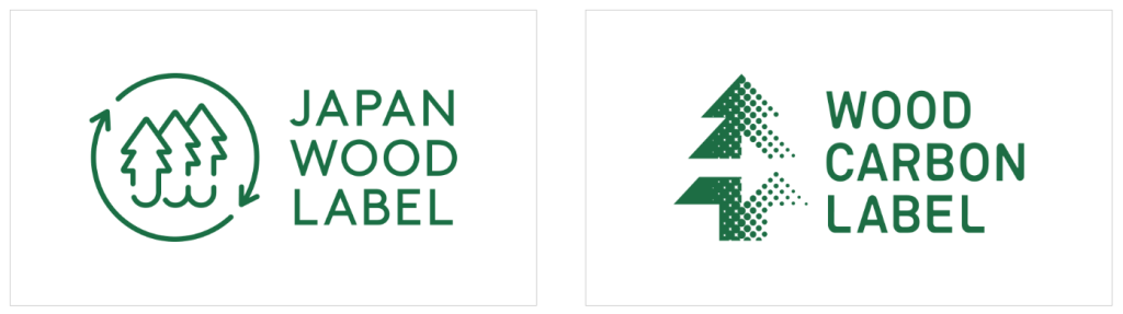 Japan Wood Label(左)とWood Carbon Label(右)のロゴマーク