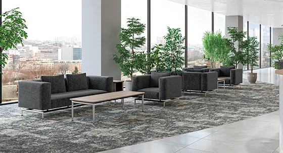 オープン型オフィスや開放的なエントランスでもエグゼクティブにふさわしい空間を創出できるスチール脚を採用。足元の軽快なフォルムと自由な組み合わせで、多様な空間づくりが可能だといいます。