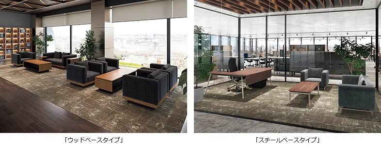 今回、新ラインとして登場する「スチールベースタイプ」は、モダンでスタイリッシュなスチール脚デザインが特長だといいます。軽やかで洗練された印象を備え、さまざまなシーンに対応するといいます。ソファを中心にチェアやスツール、テーブルなど豊富なラインアップにより、フレキシブルで格調高いレイアウトを実現するとしています。