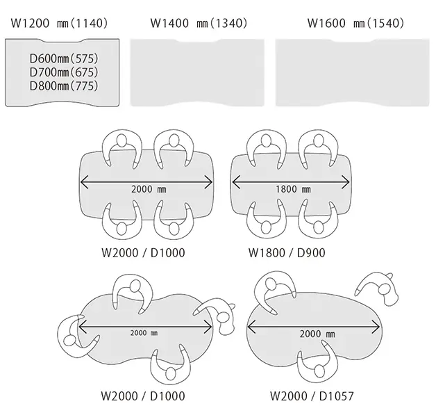 テーブルタイプは、緩やかなカーブでつないだストレート型、柔らかな印象のひょうたん型、資料の共有がしやすいビーンズ型など、多彩なミーティングスタイルを想定した形状をラインアップしたとしています。