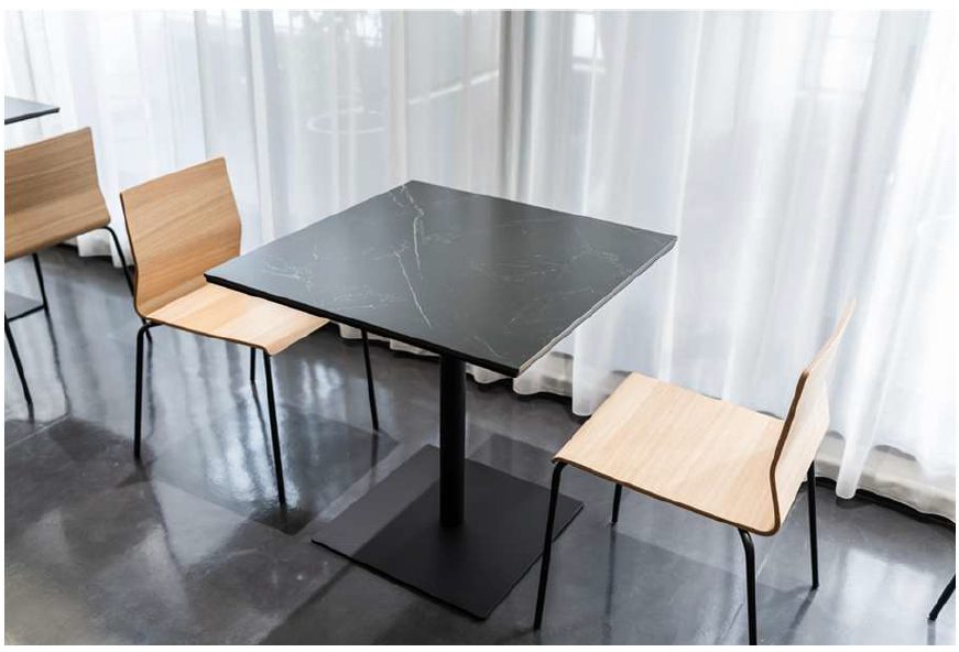 ホワイトマーブルは、淡い白をベースに繊細なマーブル模様を重ねた明るい印象の天板だといいます。清潔感があり、空間のトーンを自然に引き上げるような軽やかさがあるとしています。オフィスの休憩スペースやラウンジなど、開放感を演出したい場面で使いやすいカラーだとしています。