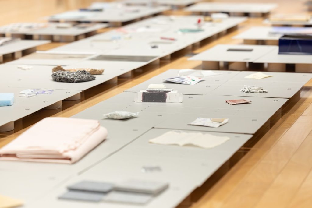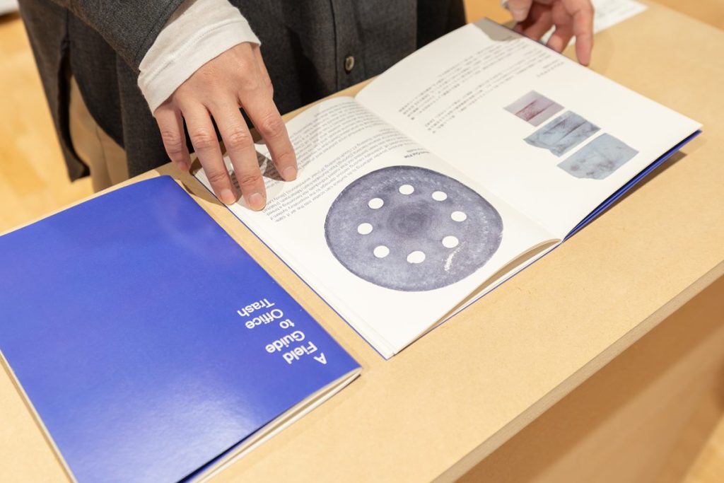 2025年6月から12月の半年間、オフィスに「あいまいなごみ」専用の収集箱を設置し、もやすごみ、もやさないごみ、金属ごみなど、分別に迷うものを収集したといいます。収集したごみから見えてきたのは、日常の中で明確に分類できない「あいまいさ」と、ごみ箱の前で立ち止まる数秒間の迷いだといいます。この展示は、分別のあいまいさを紐解き、解決への手掛かりを探っているとしています。