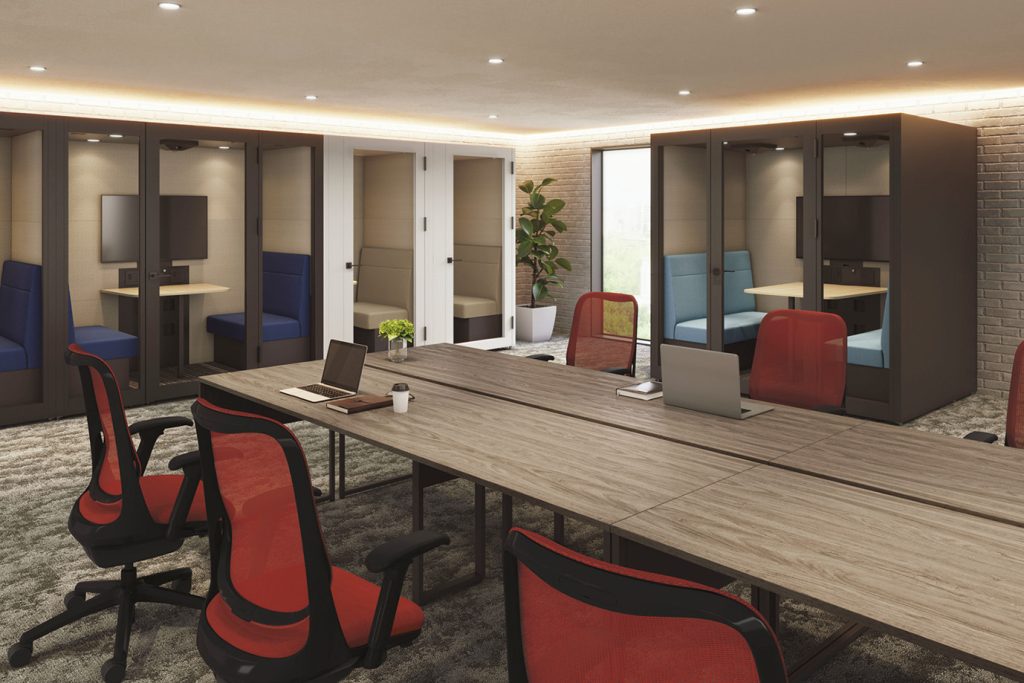 同社は、天井高に左右されにくい総高を抑えた設計のドア付ワーキングブースに、1人用スタンダード・2人用・4人用の3モデルを追加ラインアップ。ひとりでの集中作業や小規模ミーティングなどに利用できるとしています。