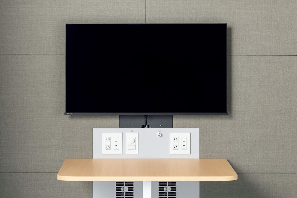 天板上部の壁面にモニターを取り付けられる「モニター用パネル付」モデルをラインアップし、利便性向上を図ったといいます。12~40インチ(重量は最大20kg)までのモニターが設置可能だとしています。