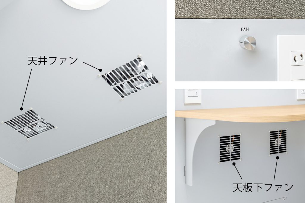 ブース内の空気を循環させ、常に快適な状態を保つといいます。ダイヤルを回して風量を調節できるとしています。