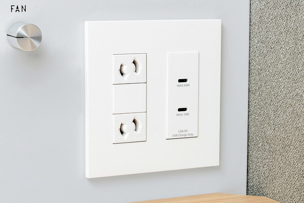 モバイル機器等の充電に使用できるUSB-Cとコンセントを設けていlるといいます。(1人用:各2口、2人用以上:各4口)