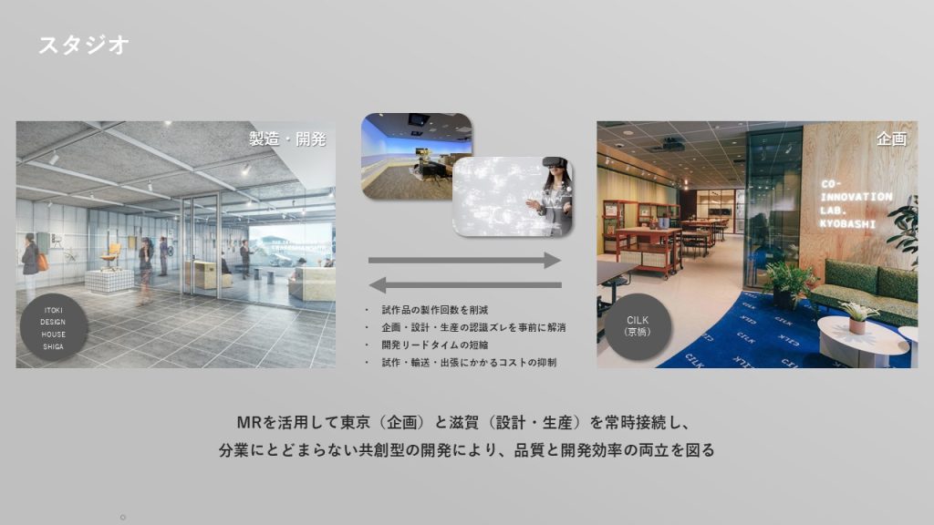 エルゴノミクスラボでは、モーションキャプチャーやシートトレーサーを用いた身体データに基づく検証を実施。スタジオではMRを活用し、企画部門のある東京と設計・生産部門のある滋賀を接続しているといいます。拠点や部門を越えた共創型の開発を日常化し、開発の質とスピードの向上を図っているとしています。