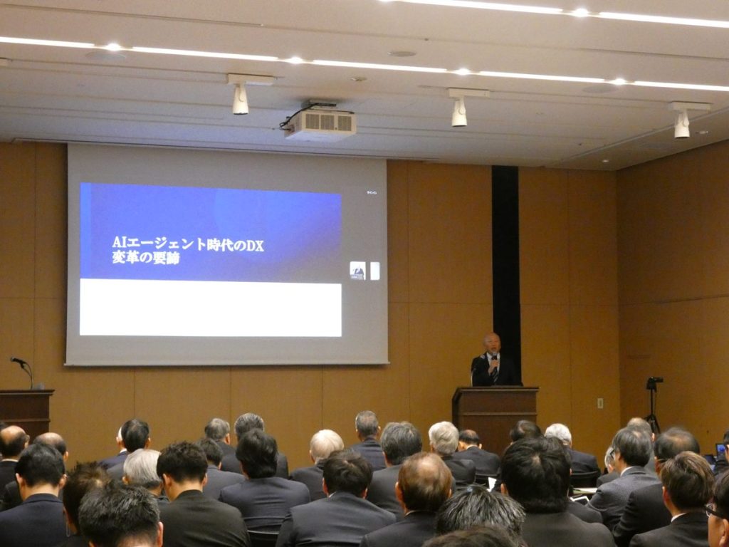第1部の新春記念講演会(Zoom併用)では、「AIエージェント時代のDX」という演題で、株式会社日経BP社 常務執行役員 メディアマーケティング担当 戸川尚樹(とがわ なおき)氏が講演を行いました。