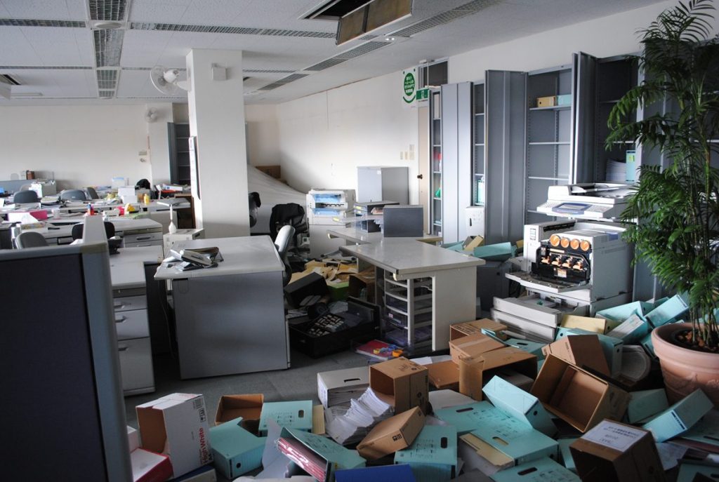 書類の入った書庫は重量が大きいため、地震発生の際に転倒すると従業員の怪我に繋がる可能性があり大変危険だといいます。